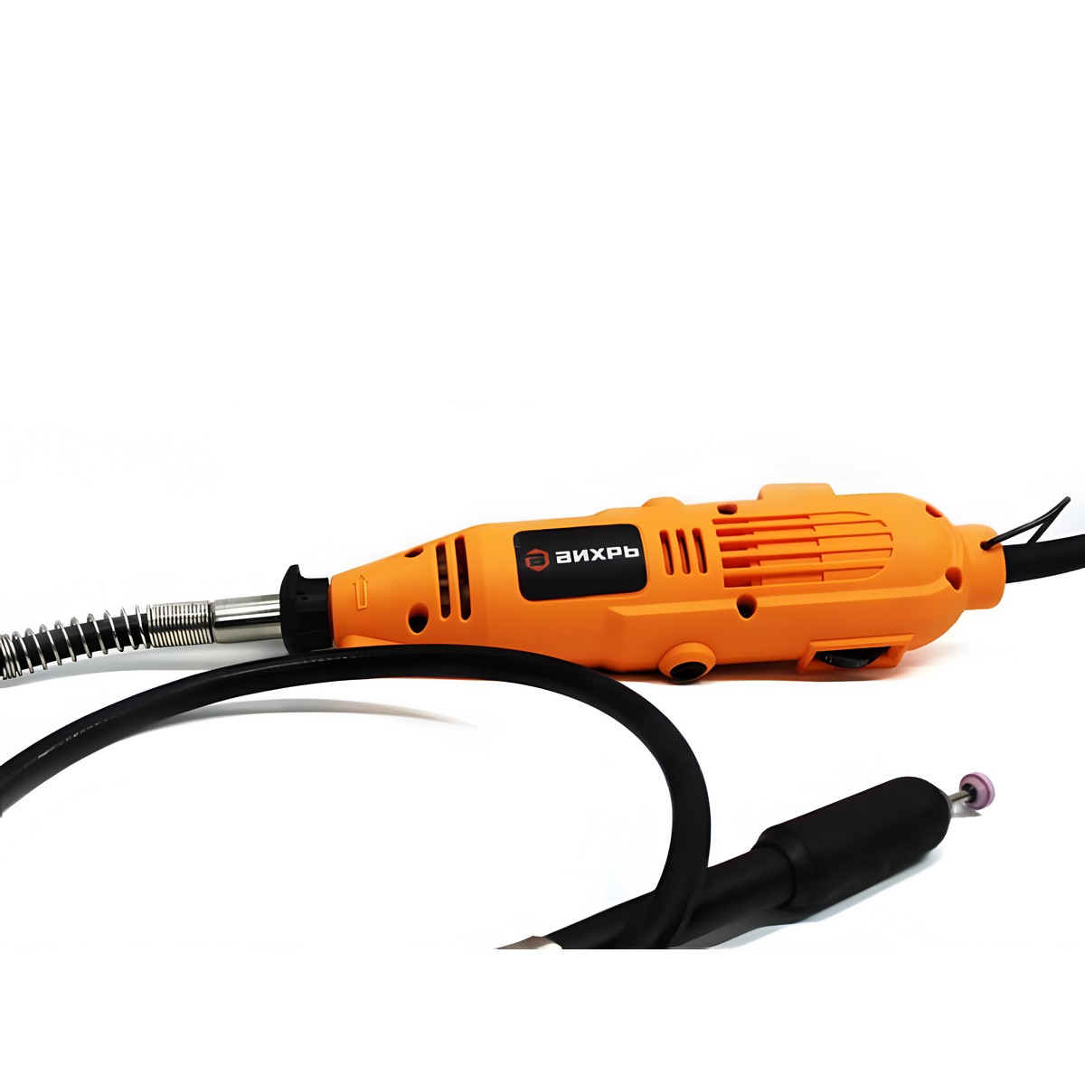 - Гибкий вал позволяет более комфортно работать с мелкими деталями, есть стойка для удобного хранения.