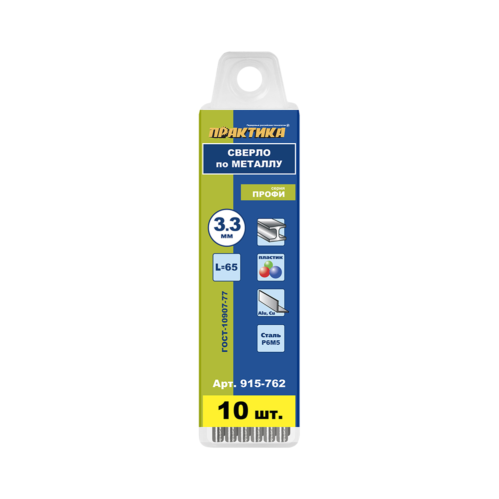 Сверло по металлу 3.3 х 65 мм (уп. 10 шт.) ПРАКТИКА 915-762