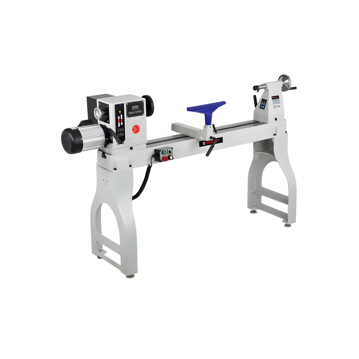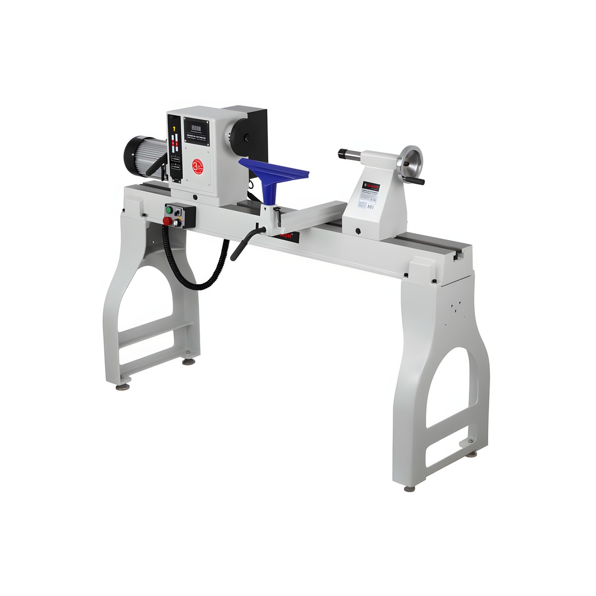 Станок имеет мощный асинхронный двигатель – 2200 Вт. Диапазонов скоростей два: низкий - от 0 до 1200 об./мин., и высокий – от 0 до 3200 об./мин. Скорость регулируется плавно с помощью частотного преобразователя. Отличительная особенность – выносной пульт управления с магнитной фиксацией.